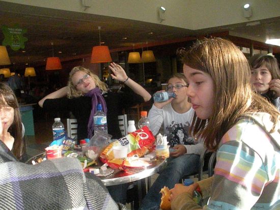 Apres quelques minutes de repos (et de bonbons... juste pour le sucre!), les benjamines repartent a l'échauffement, pour affronter l'équipe de Monéteau.